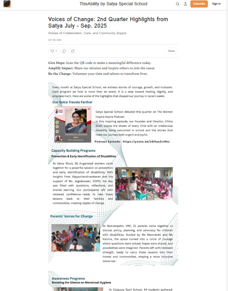 Satya recently took the first steps toward a long-time dream—that of a truly inclusive school system where children with disabilities can study, play, and grow along with other children.